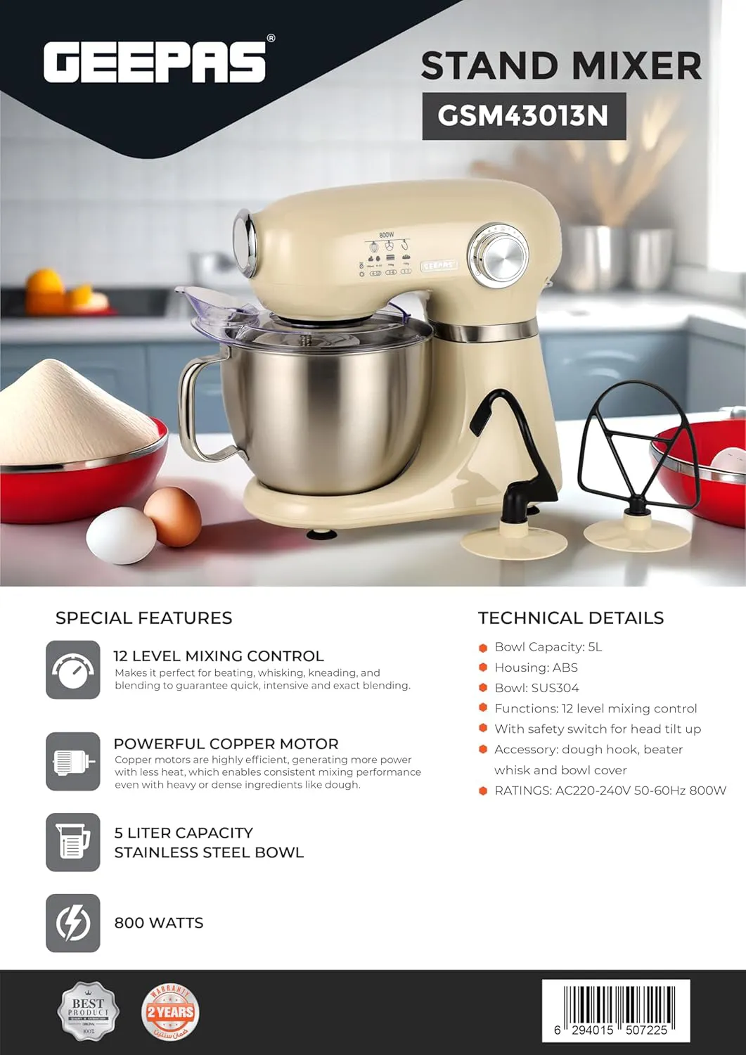 همزن با کاسه ۵ لیتری جیپاس 43013N