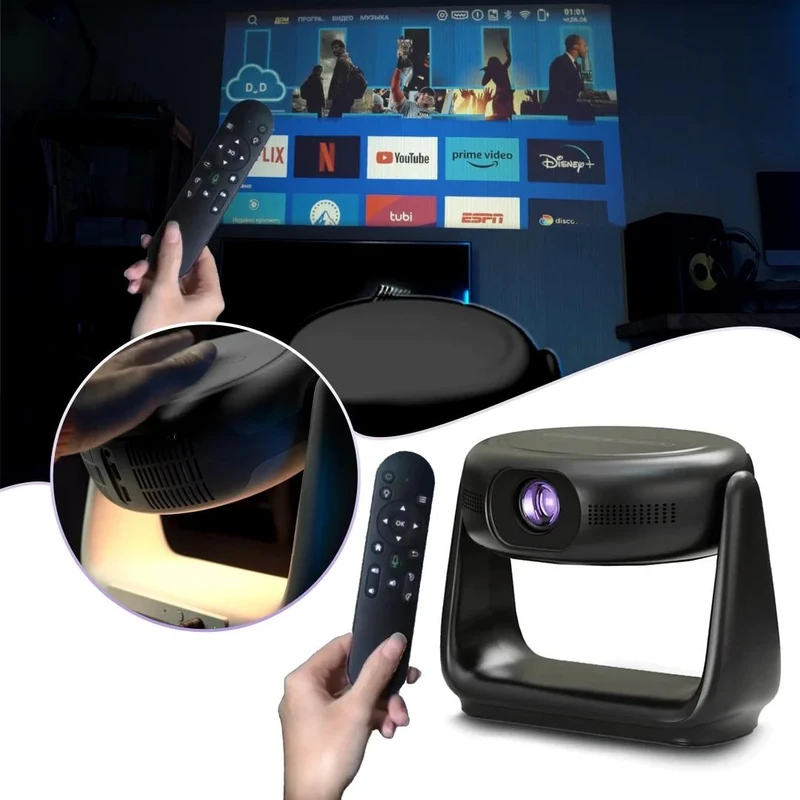 ویدیو پروژکتور شارژی پاورولوژی Powerology 300 Ansi Lumens Full HD Portable Projector تولید تصویر از ۳۰ تا ۱۵۰ اینچ ، سازگار با گوشی های اندروید و ios مدت زمان استفاده در حالت شارژی ۲ ساعت و دارای محیط اندورید ۱۱