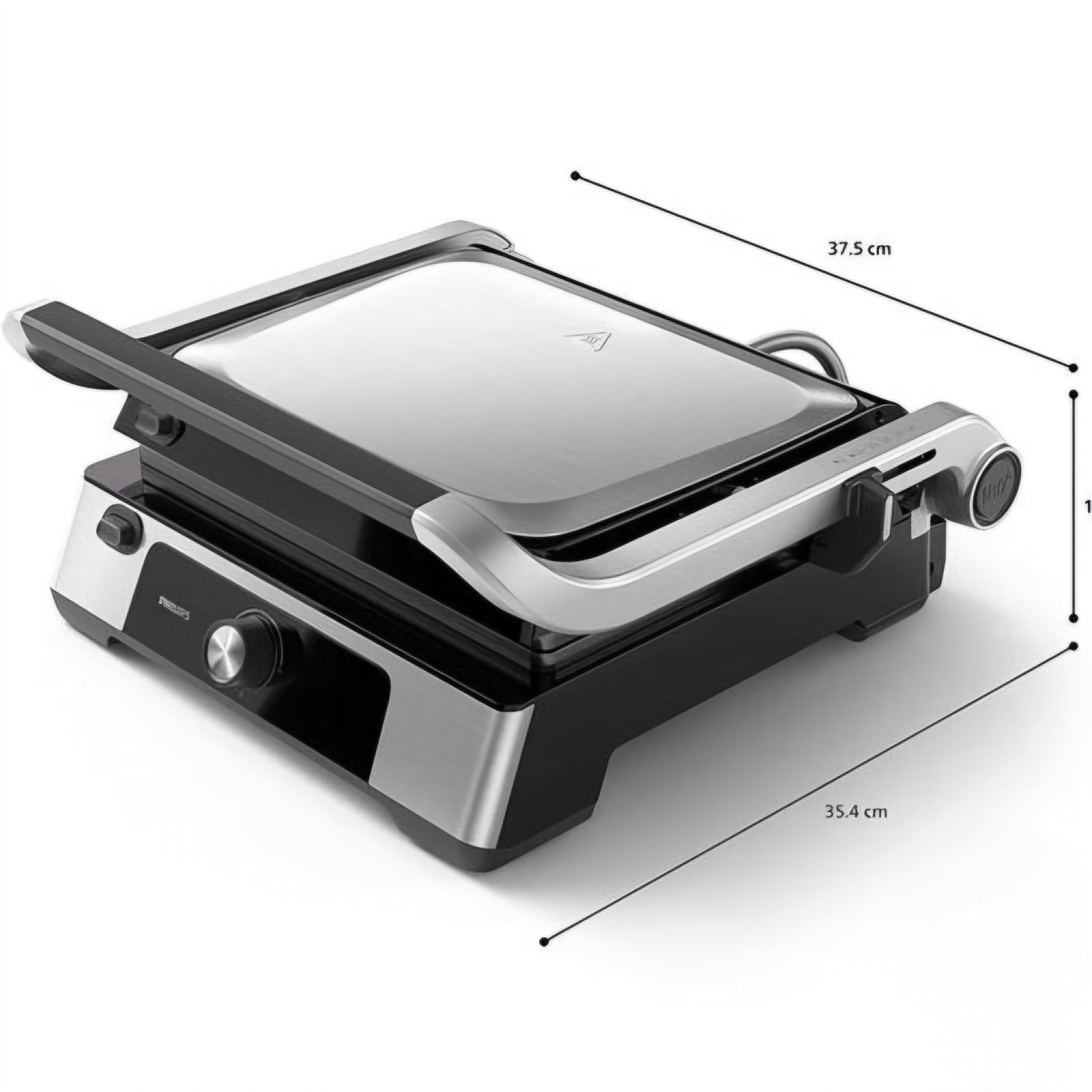 توان مصرفى 2200 وات، سيستم پخش يكنواخت حرارت در تمامى قسمت صفحات گريل، قابليت تنظيم درجه حرارت جهت پخت اسنک، فيله مرغ، پخت استيک و سبزيجات، صفحات جداشو و قابل شستشو، قابليت استفاده بصورت 18o درجه (باربيكيو، داراى ظرف مخصوص جمع آورى روغن و چربى مواد غذايى، قابليت تنظيم ارتفاع سطح طبقات، صفحات نيسب و با كيفيت بسيار بالا، قابليت تنظيم درجه حرارت از oه تا 200 درجه سانتيگراد، طراحى و مهندسى محصول در كشور هلند مونتاژ نهايى در کشور چین انجام شده
