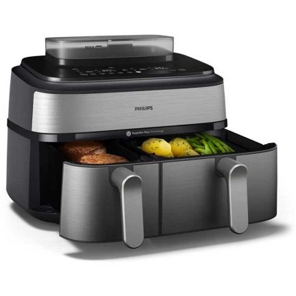 مشخصات سرخ کن دوقلو فیلیپس مدل ظرفیت 9 لیتر (6 لیتر + 3 لیتر)توان مصرفی 2750 واتوزن 8.75 کیلوگرمکارکرد بخارپز کردن، سرخ کردن با هوا، گرم کردن مجدد، پختن، کباب کردن، برشته کردنقابلیت پخت پخت با بخار، پخت با هواقابلیت گرم نگهدارنده داردقابلیت تنظیم دما 40-200 درجه سانتیگرادجنس بدنه استیل ضد زنگ/پلاستیک